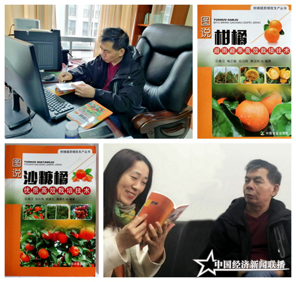 采訪結(jié)束,區(qū)善漢副院長(zhǎng)親自簽名贈(zèng)送記者所著書(shū)籍《圖說(shuō)柑橘避雨避寒高效栽培技術(shù)》和《圖說(shuō)沙糖橘優(yōu)質(zhì)高效栽培技術(shù)》系列柑橘提質(zhì)增效生產(chǎn)叢書(shū)。該系列叢書(shū)是由國(guó)家柑橘產(chǎn)業(yè)技術(shù)系統(tǒng)廣西創(chuàng)新團(tuán)隊(duì)栽培功能崗位專(zhuān)家、廣西特色作物研究院區(qū)善漢研究員等編著?!秷D說(shuō)柑橘避雨避寒高效栽培技術(shù)》針對(duì)越冬果實(shí)或果實(shí)成熟期間經(jīng)常因低溫霜凍、冰凍或降雨導(dǎo)致裂果、爛果、落果的柑橘品種,從避雨避寒栽培角度,全面介紹了柑橘避雨避寒栽培的概況以及適宜避雨避寒栽培的品種、果園規(guī)劃與建園、幼樹(shù)管理、結(jié)果樹(shù)管理、避雨避寒栽培技術(shù)、主要病蟲(chóng)害防治等知識(shí)與技術(shù)。