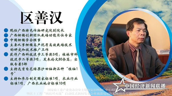 關(guān)于如何應(yīng)對(duì)低溫、雨水多導(dǎo)致柑橘品質(zhì)下降和爛果、落果問(wèn)題,中經(jīng)記者專(zhuān)程到位于桂林市七星區(qū)普陀路的廣西特色作物研究院請(qǐng)教了區(qū)善漢副院長(zhǎng)。幾年前就聽(tīng)聞區(qū)善漢副院長(zhǎng)在柑橘種植業(yè)的突出貢獻(xiàn),但第一次真正見(jiàn)面卻是在2018年8月28日農(nóng)工委土壤修復(fù)治理推廣中心在廣西南寧召開(kāi)的“土壤修復(fù)治理推廣中心廣西工作站”揭牌儀式會(huì)議上。這次記者又專(zhuān)程到廣西特色作物研究院院長(zhǎng)辦公室采訪了他。