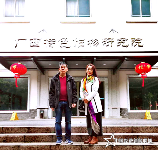 區(qū)善漢副院長(zhǎng)(左一)與中經(jīng)記者在廣西特色作物研究院門(mén)口合影
