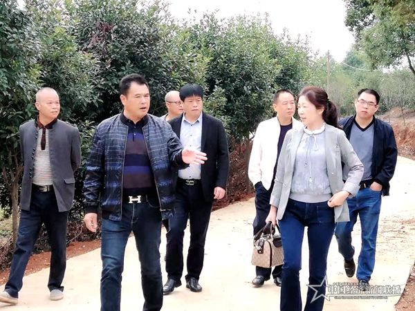 (現(xiàn)場,果園園主劉明湖(左二)為大家介紹油茶樹生長情況)