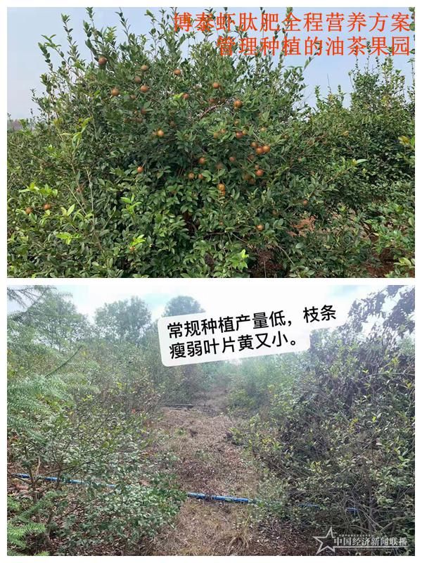 以上兩種產(chǎn)品噴施兩用,可以使油茶樹得到全面均衡營養(yǎng)、樹體健壯,有效促進(jìn)果實(shí)糖分等風(fēng)味物質(zhì)的積累,增加果實(shí)色澤度,提高果實(shí)品質(zhì)和口感。