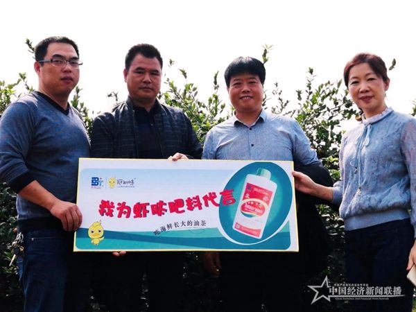 (從左到右:油茶果園易雄飛,劉明湖老板,合作聯(lián)社雷桂洋主任與博泰公司潘愛華合影留念)