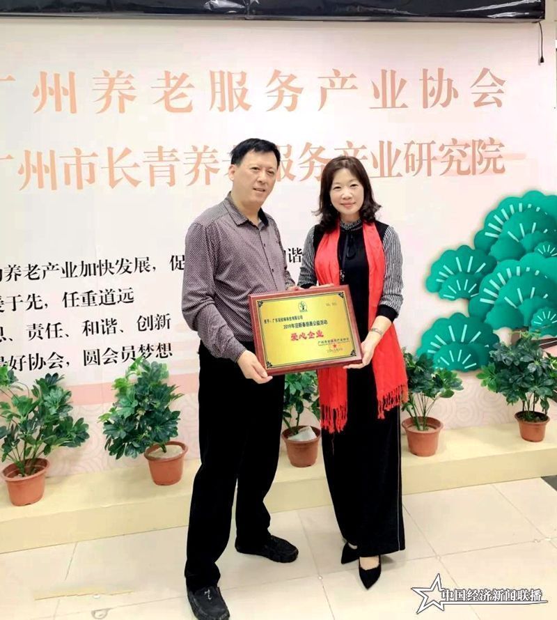 (慰問的該養(yǎng)老公寓負責人劉寧與廣東冠初味科技有限公司副總經(jīng)理潘愛華合影留念)